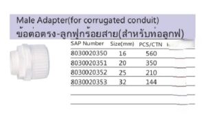 ข้อต่อตรง-ลูกฟูกร้อยสาย(สำหรับท่อลูกฟูก) สีขาว LESSO