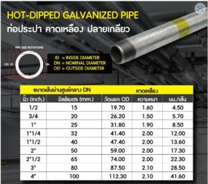 ท่อประปากัลวาไนซ์(ปลายเกลียว)คาดเหลือง,น้ำเงิน