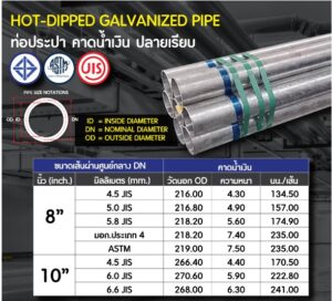 ท่อประปากัลวาไนซ์(ปลายเรียบ)คาดเหลือง,น้ำเงิน