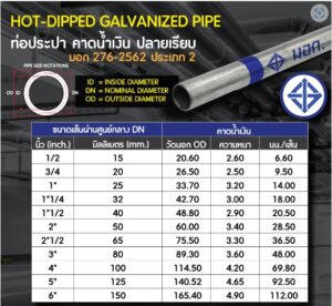 ท่อประปากัลวาไนซ์(ปลายเรียบ)คาดเหลือง,น้ำเงิน