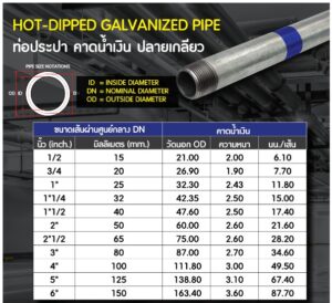 ท่อประปากัลวาไนซ์(ปลายเกลียว)คาดเหลือง,น้ำเงิน